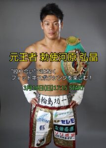 イベント決定! 第5回 てっしーこと勅使河原弘晶さん 元WBOアジアンパシフィック バンタム級王者👑 東洋太平洋スーパーバンタム級王者👑 @teshigawarahiroaki フィットネスインストラクター IKUKO とのコラボ企画🥊